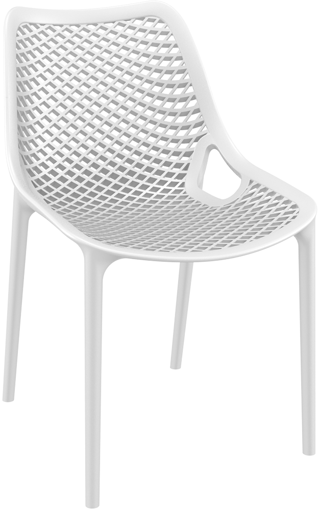 Air chair is produced with a single injection of polypropylene reinforced with glass fiber obtained by means of the latest generation of air moulding technology with neutral tones. For indoor and outdoor use.