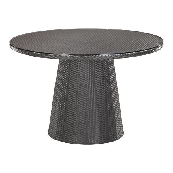 The Avalon Table brings Art Deco to Al Fresco. The frame is constructed from epoxy coated aluminum and the weave from UV treated polypropylene for maximum resistance against the elements. Its expansive round top seats up to eight.