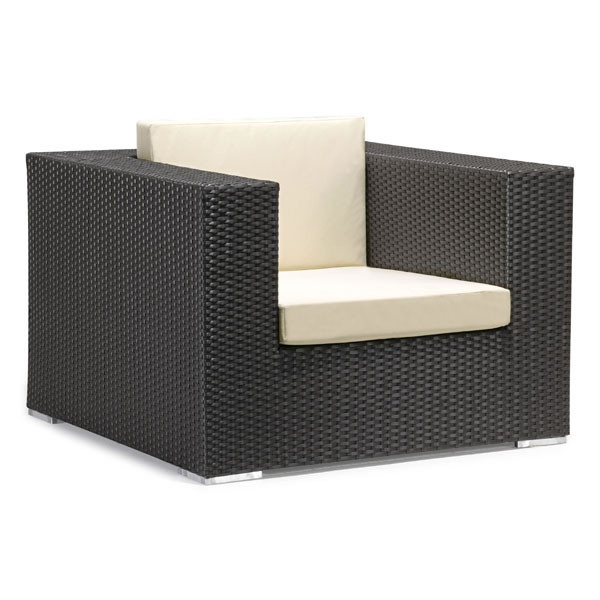 Boxy lines offset by light cushions lend a chic ambiance to an outdoor party or a solitary sunset. The weather-resistant Cartagena series features a sectional, loveseat, armchair and coffee table. Sold separately.