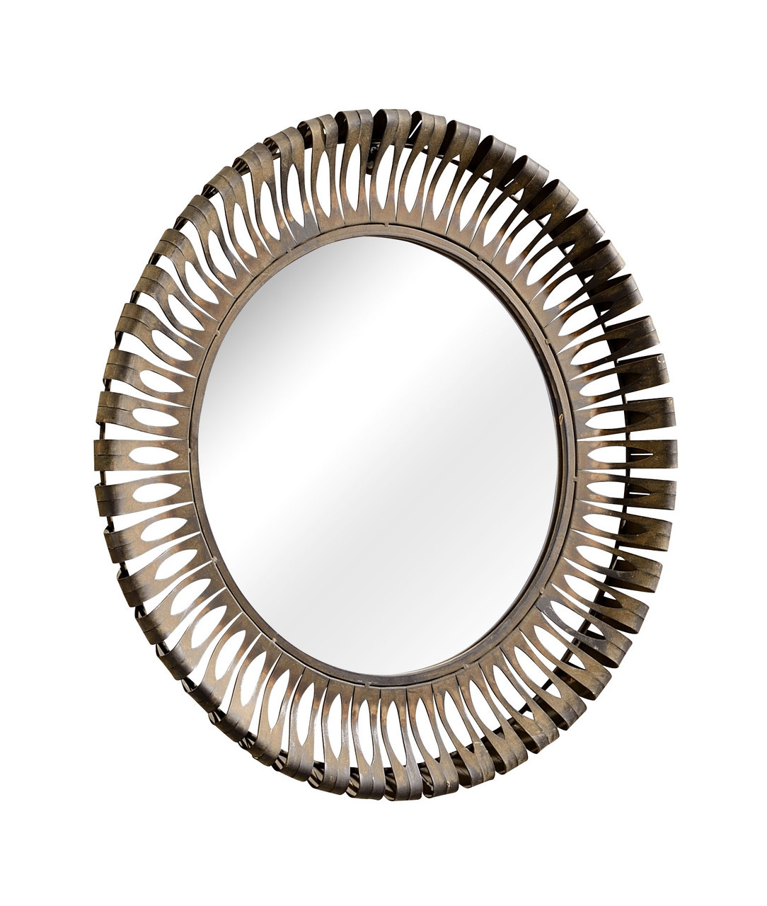 Folded metal tags surround the Drum Mirror, giving it a '70s feel. But you don't have to go whole hog with the avocado or burnt orange. It's just as lovely in an industrial or exotically-designed room.