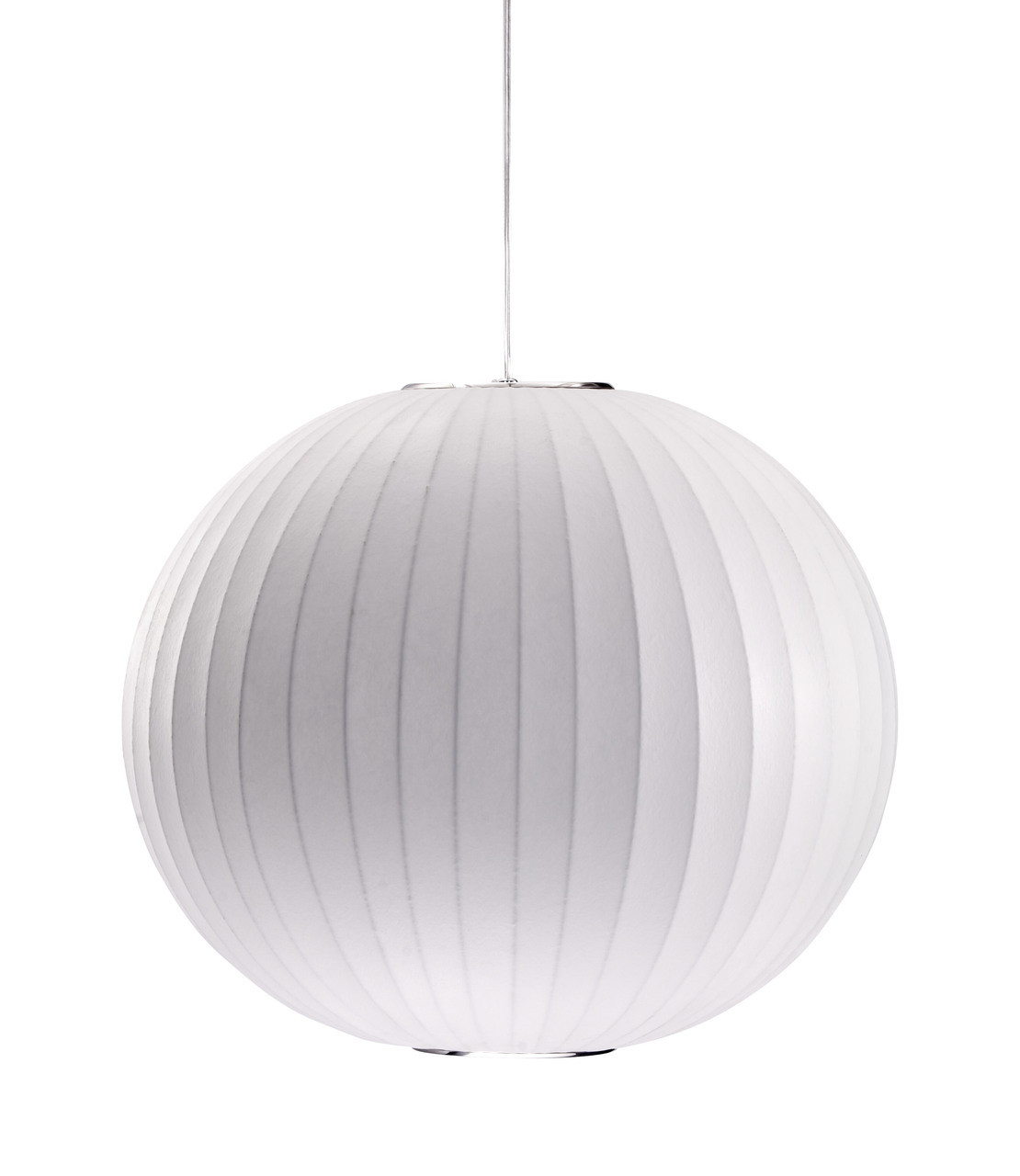 Hang the lovely white orb of the Geostrophic Ceiling Lamp over your dining table or a favorite big reading chair. Curved metal spokes are covered in white silk. It will spread a warm white light to any space.