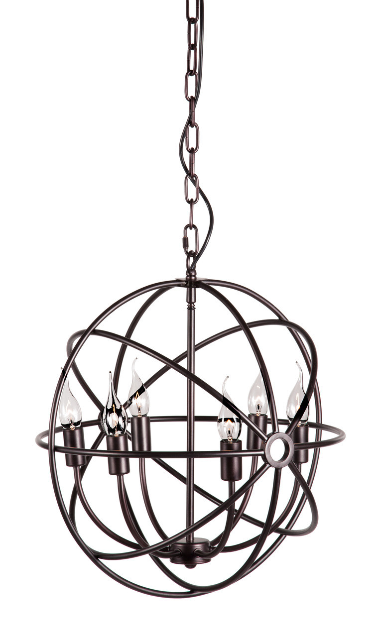 Product Finish: Metal. Max Bulb Watts: 25W. Socket size: E12. Bulb type: Type BA. Number of bulbs (included) : 6. Switch Type: N/A. Cord length (in): N/A. Assembly required: N