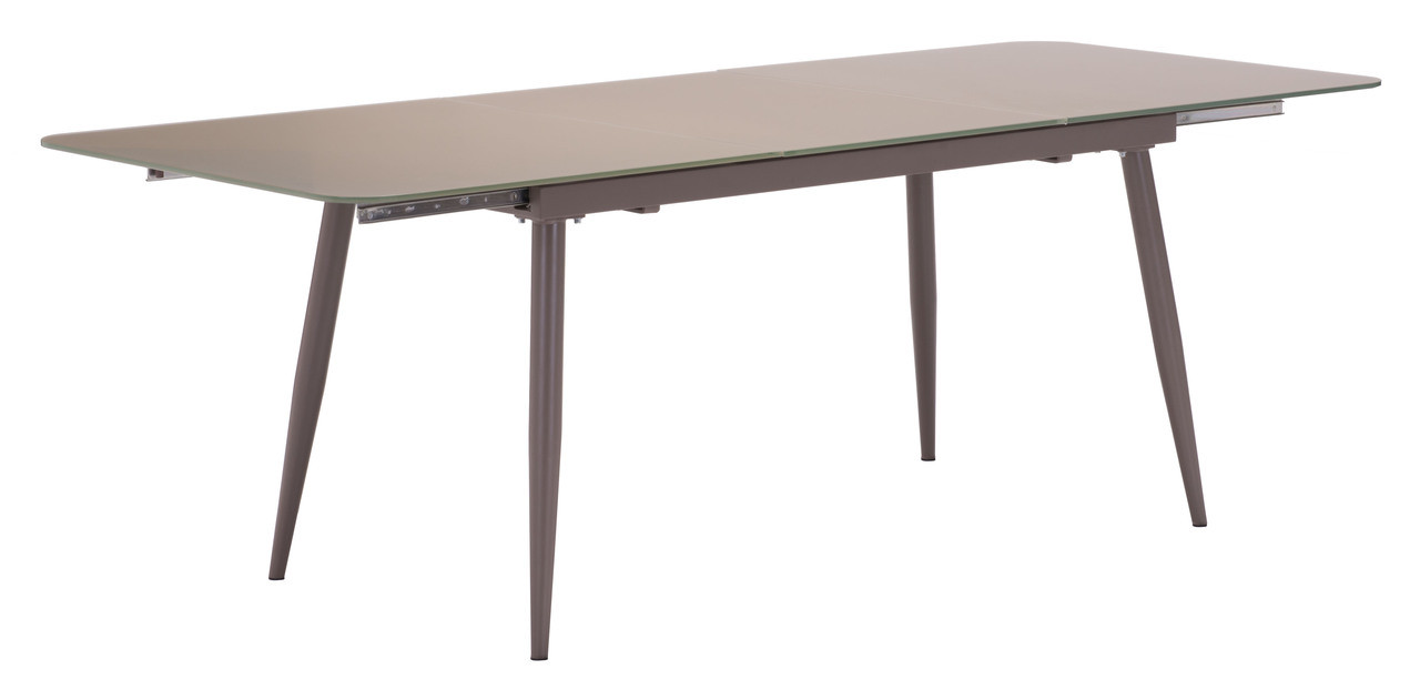 The Mercier Extension Table combines the cool sleek look of glass and steel with the warm browns of mocha. It is the perfect piece of contemporary to break up the minimal look in any room. This is a stunning table.
