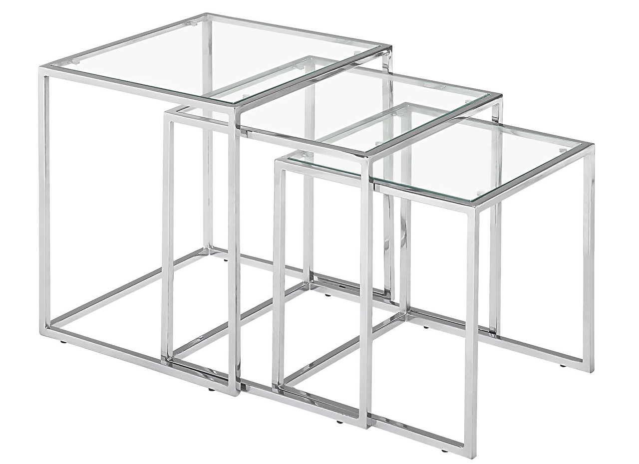 Like any nesting table, the possibilities are endless with the Pasos. It can be used in any space and in a multitude of ways. It is made of a chrome steel tube frame and with clear or black tempered glass.
