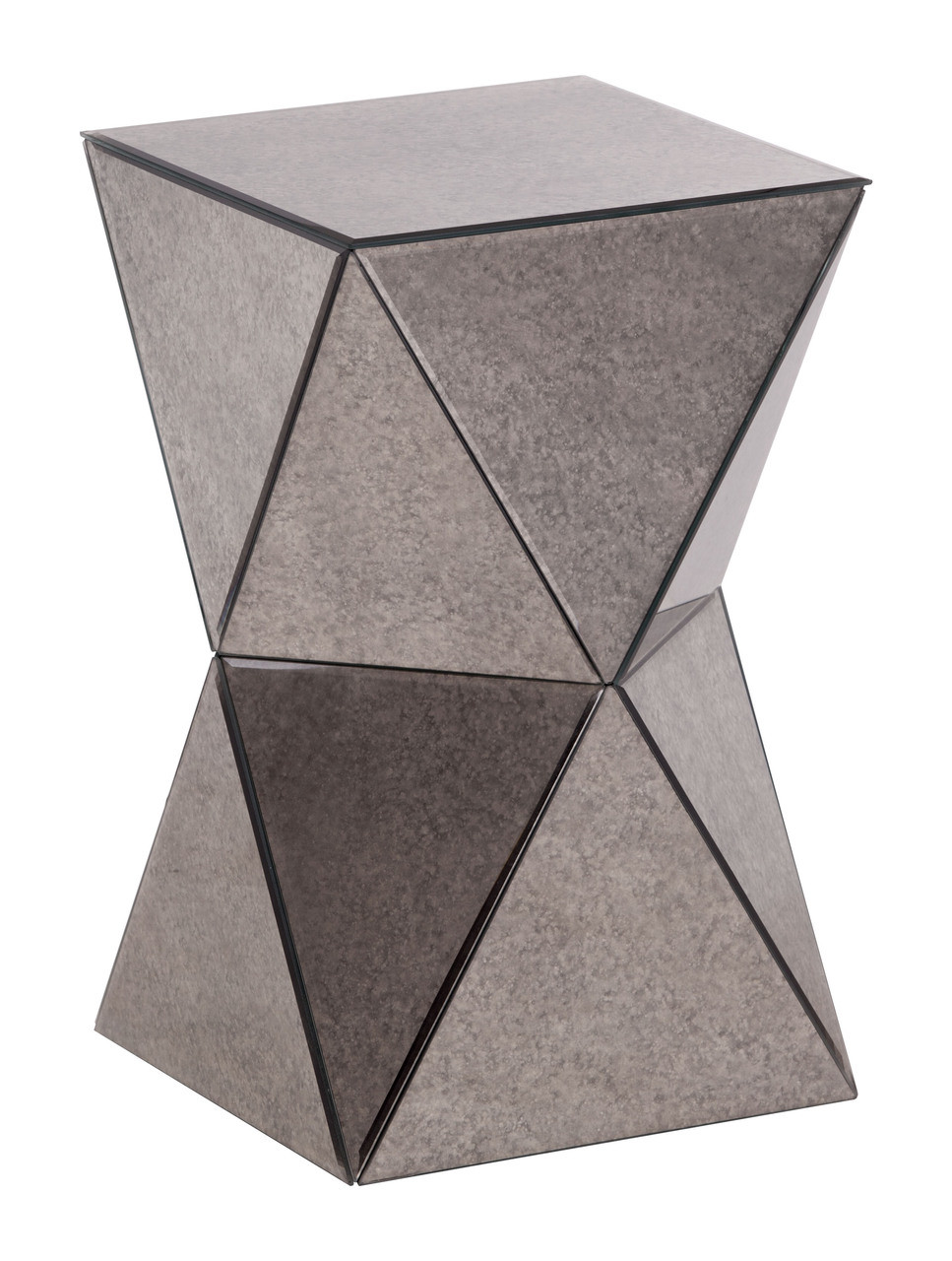 Like it's straight out of a museum, the Prism Side Table lends an architect's sensibility to any room. Its wide angles are covered in antiqued mirror. Place it in a corner to hold a towering plant or next to the couch.