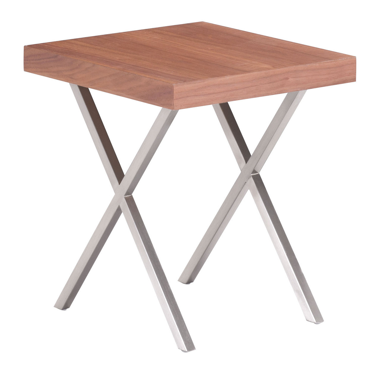 The Renmen Side Table combines the miminal elegance of modernism and stainless steel with the warm walnut tones of the mid-century. This table works in any style space, no matter how contemporary or transitional. It is a great piece of design