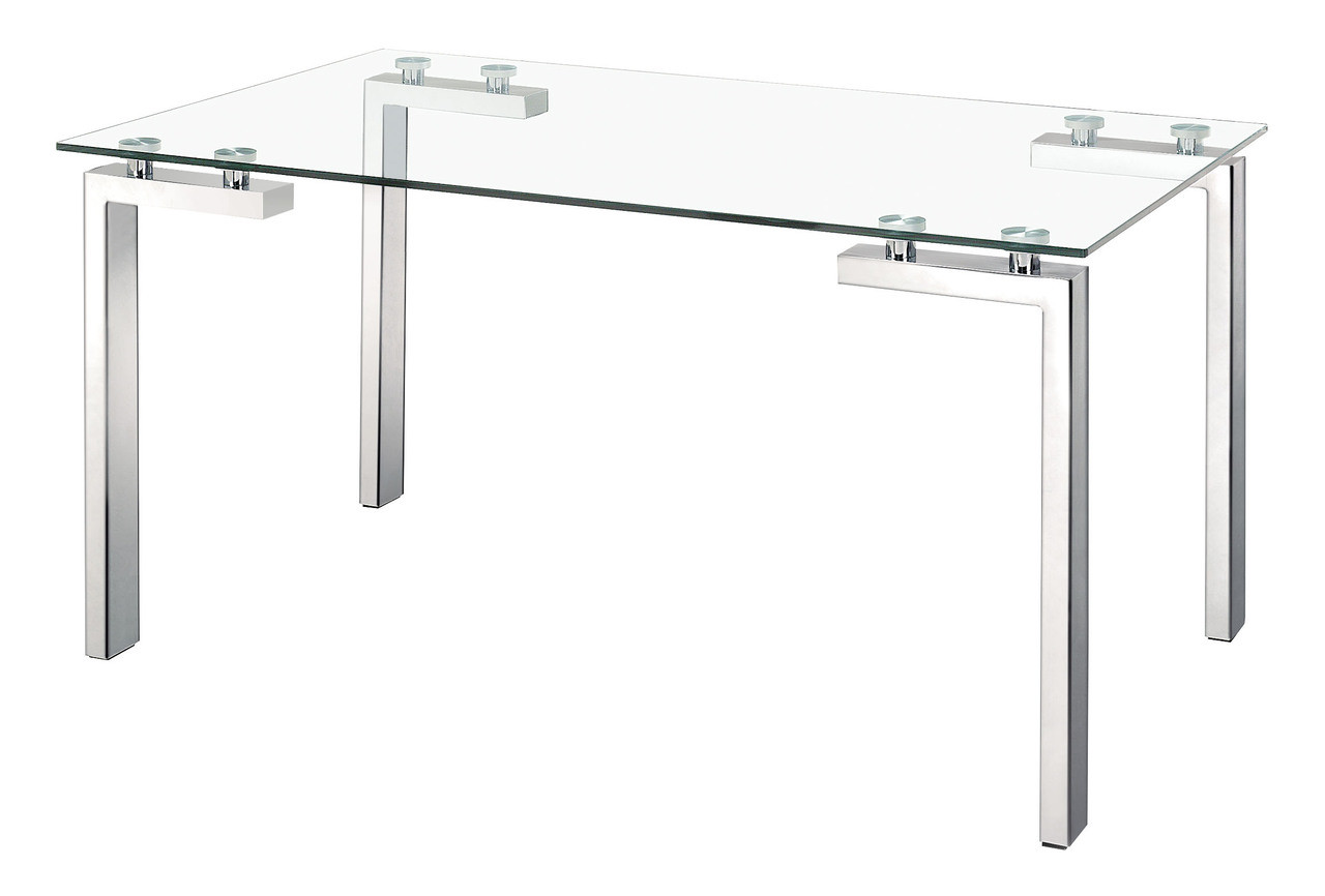 The Roca dining table has strong architectural lines in its design. Made with a clear tempered glass top and stainless steel tube legs, this table looks great with dining chairs or as a desk with an office and two conference chairs. Be inspired with the Roca table.