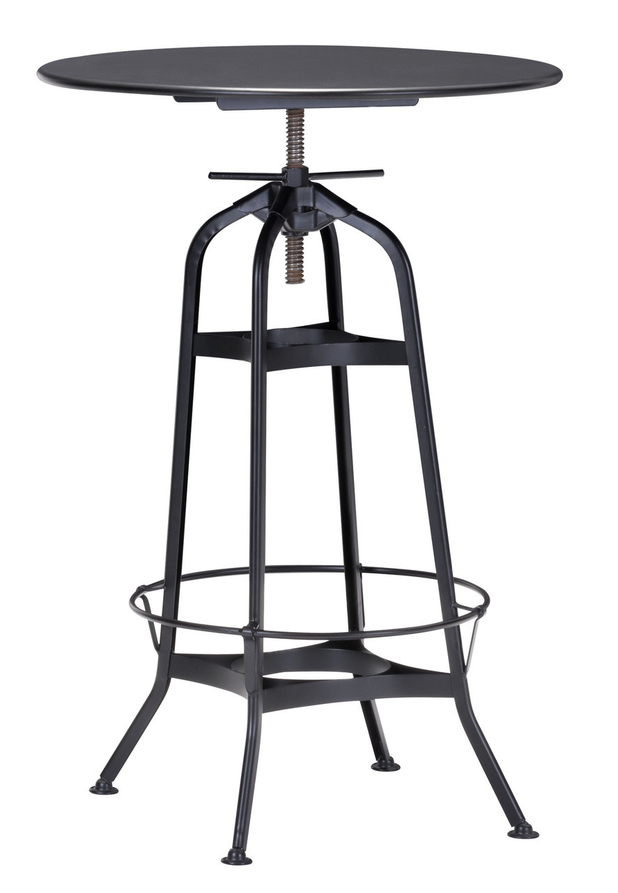 The Spartan Bar table has a lean architectural looking base with a matte black finish. The round top comes with adjustable function, simlpl spin the top to adjust to desired height.
