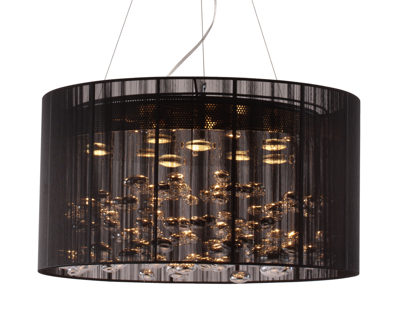 The Symmetry Ceiling Lamp creates the illusion of pools of liquid chrome floating under a black lace veil. The ceiling lamp has eight 50 watt halogen bulbs. The chandelier length can be adjusted as needed.