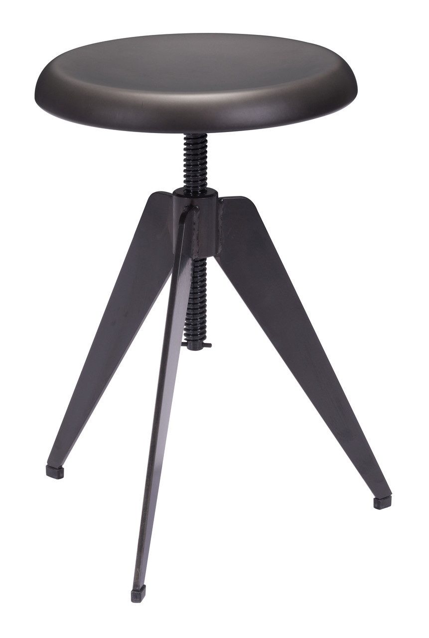 Rocket to outer space with our Thales stool, this petite 3 legged angled stool, has a matte black finish base. Simply spin seat up or down for desired height