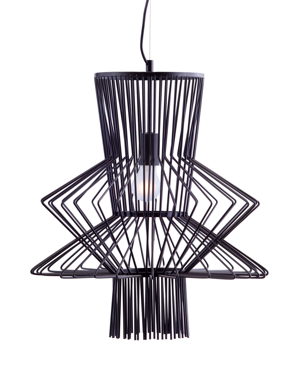 Black metal wire bent into an intriguing shape, the Tornado Ceiling Lamp adds an unusual element to your walls. Holds one 100 watt bulb. Not included.