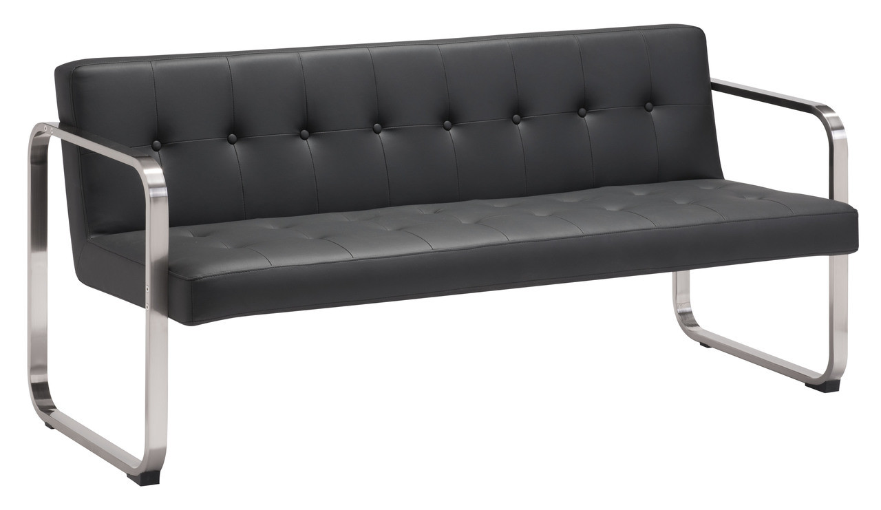 Modern all the way, the Varietal Sofa is a definite looker! With buttons and tufting in leatherette and a brushed stainless steel frame, it has strong form that works in many work spaces. It is available in both black and white.