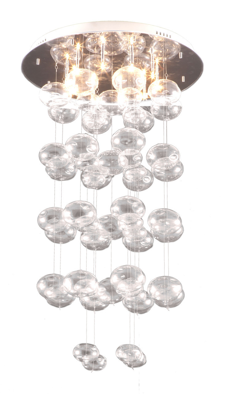 Harmonious orbs hang from a polished stainless steel base. The Vector Ceiling Lamp sends ten 15 watt halogen lights cascading down to create a warm glow. If your life needs a little more floating-in-midair, this is your lamp.