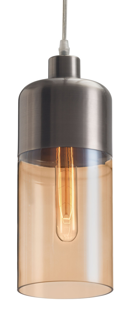 Vente ceiling lamp has sleek retro styling with long Edison bulb surrounded by amber colored blown glass shade, accented by bronze satin metal. Add this to a dining room or bar for subtle vintage look or hang in entry way for understated nostalgic 1930 feel.