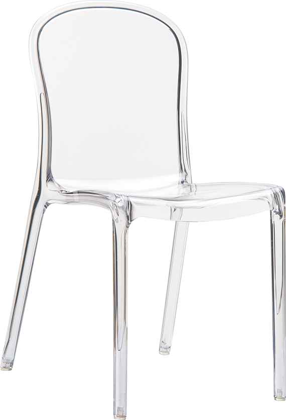 Stacking chair for indoor and outdoor use in shiny technopolymer PA6 nylon or clear polycarbonate moulded with gas technology of the second generation. Scratch resistant, self - extinguish classification V2, UV - resistant.